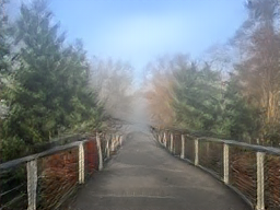 Description: A foggy sunrise on the Sammamish River Trestle bridge.