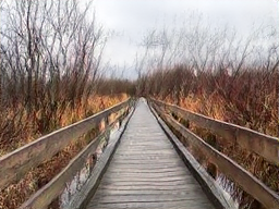 A rainy walk alongside a busy road. Cars occasionally move past.